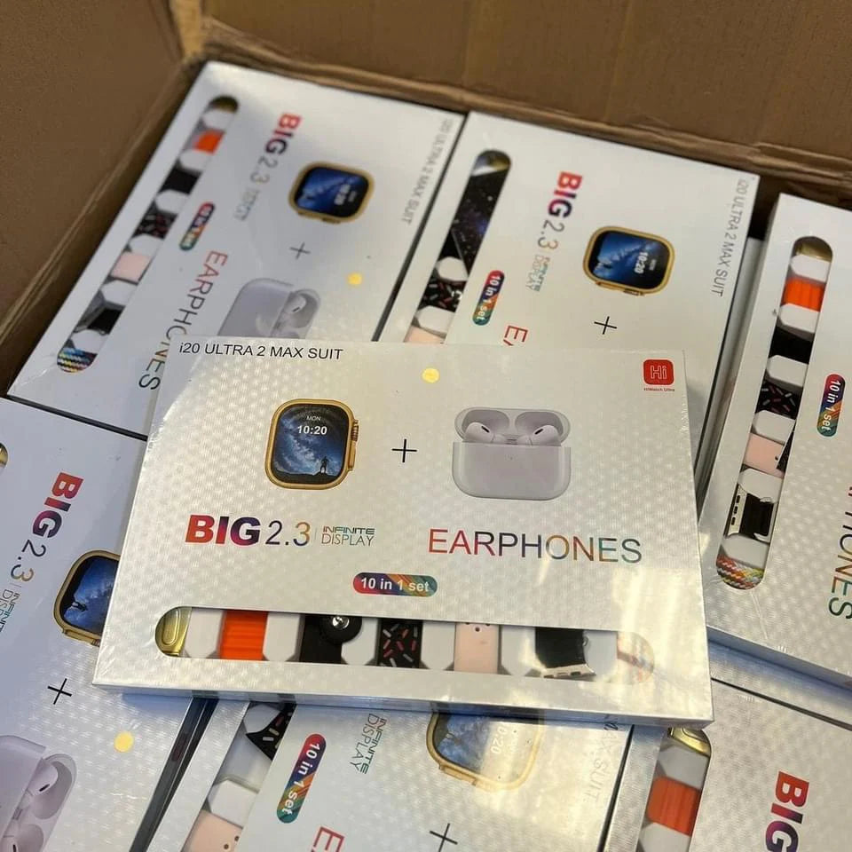 I20 Ultra Max Suit Smart Watch 10-in-1 Bundle | 7 Straps, Earbuds included